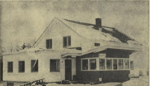 Birger Sandbakken har reist et moderne bolighus i mur, og i et tilbygg er innredet en moderne kafe med kafeteriadisk, pene møbler i smakfulle omgivelser. Det er hans finsk-fødte kone Linnea som skal stå for kafedriften. Bygget er tegnet av furnesingen Johs. Schjerpen.
